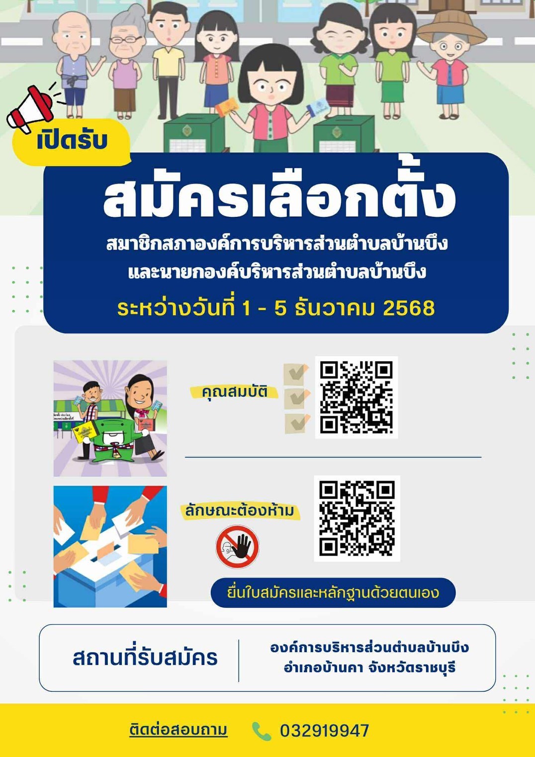 ประชาสัมพันธ์รับสมัครเลือกตั้งสมาชิกสภาองค์การบริหารส่วนตำบลบ้านบึงและนายกองค์การบริหารส่วนตำบลบ้านบึง
